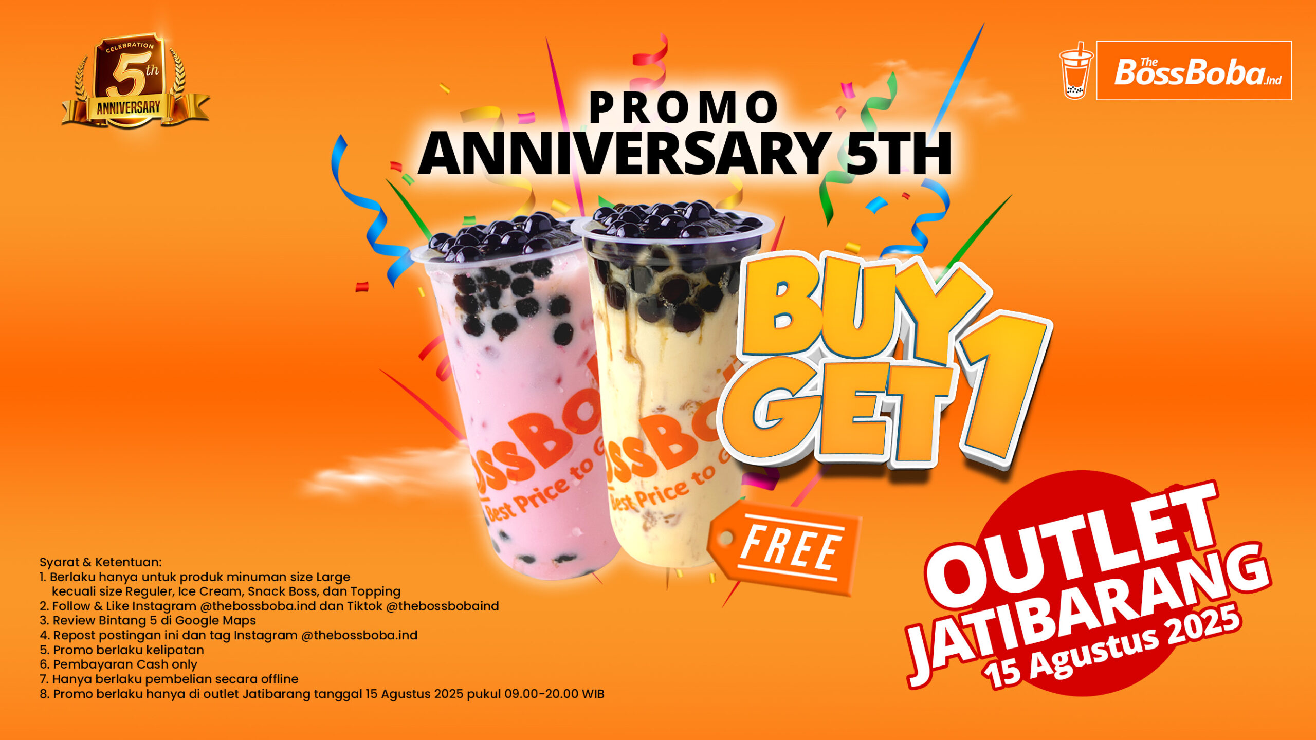 Masih dalam rangka merayakan Anniversary TheBossBoba.Ind ke 5th promo BUY 1 GET 1 balik lagi nihh!